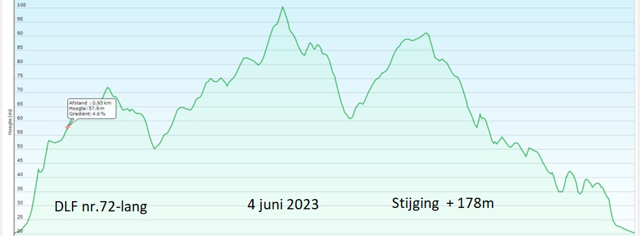 De route gaat langs goed begaanbare paden en wegen. De korte route is licht pittig met een stijging van + 143m. De lange route is pittig met een stijging van + 178m.