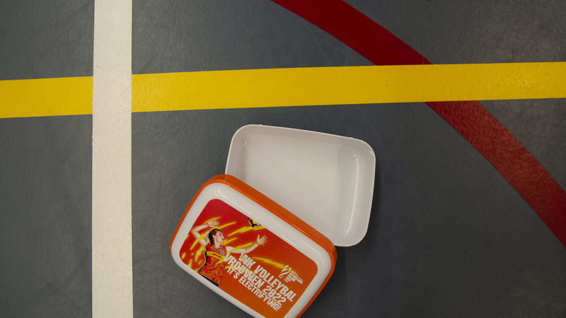 Een lege broodtrommel met opdruk van het WK Volleybal. Niks bijzonders zou je zeggen. Toch verwacht volleybalvereniging Aetos dat deze trommels de start zijn van gezondere keuzes bij de clubleden. Binnenkort start de actie: Een trommel zonder rommel. Speciaal voor de jeugdleden.